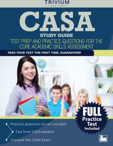 Think all CASA study guides are the same? Think again! With easy to understand lessons and 2 full length practice tests designed to maximize your score, you'll be ready. You don't want to waste time - and money! - retaking an exam. You want to accelerate your education, not miss opportunities for starting your future career! Every year, thousands of people think that they are ready for the CASA but realize too late when they get their score back that they were not ready at all. They weren't incapable, and they certainly did their best, but they simply weren't studying the right way. There are a variety of methods to prepare for the CASA...and they get a variety of results. Trivium Test Prep's CASA study guide provides the information, secrets, and confidence needed to get you the score you need - the first time around. Losing points on the CASA exam can cost you precious time, money, and effort that you shouldn't have to spend. What is in the book? In our CASA study guide, you get the most comprehensive review of all tested concepts. The subjects are easy to understand, and have fully-explained example questions to ensure that you master the material. Best of all, we show you how this information will be applied on the real exam; CASA practice questions are included so that you can know, without a doubt, that you are prepared. Our study guide is streamlined and concept-driven so you get better results through more effective study time. Why spend days or even weeks reading through meaningless junk, trying to sort out the helpful information from the fluff? We give you everything you need to know in a concise, comprehensive, and effective package.From reader reviews: